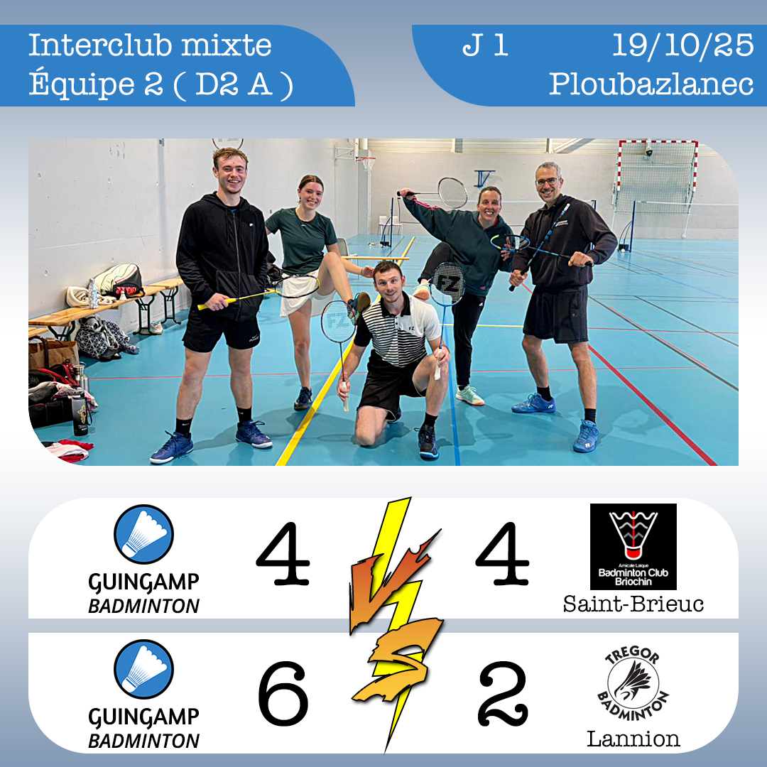 Début de saison satisfaisant pour notre équipe 2. Match nul le matin contre Saint Brieuc et victoire contre Trégor l’après midi.