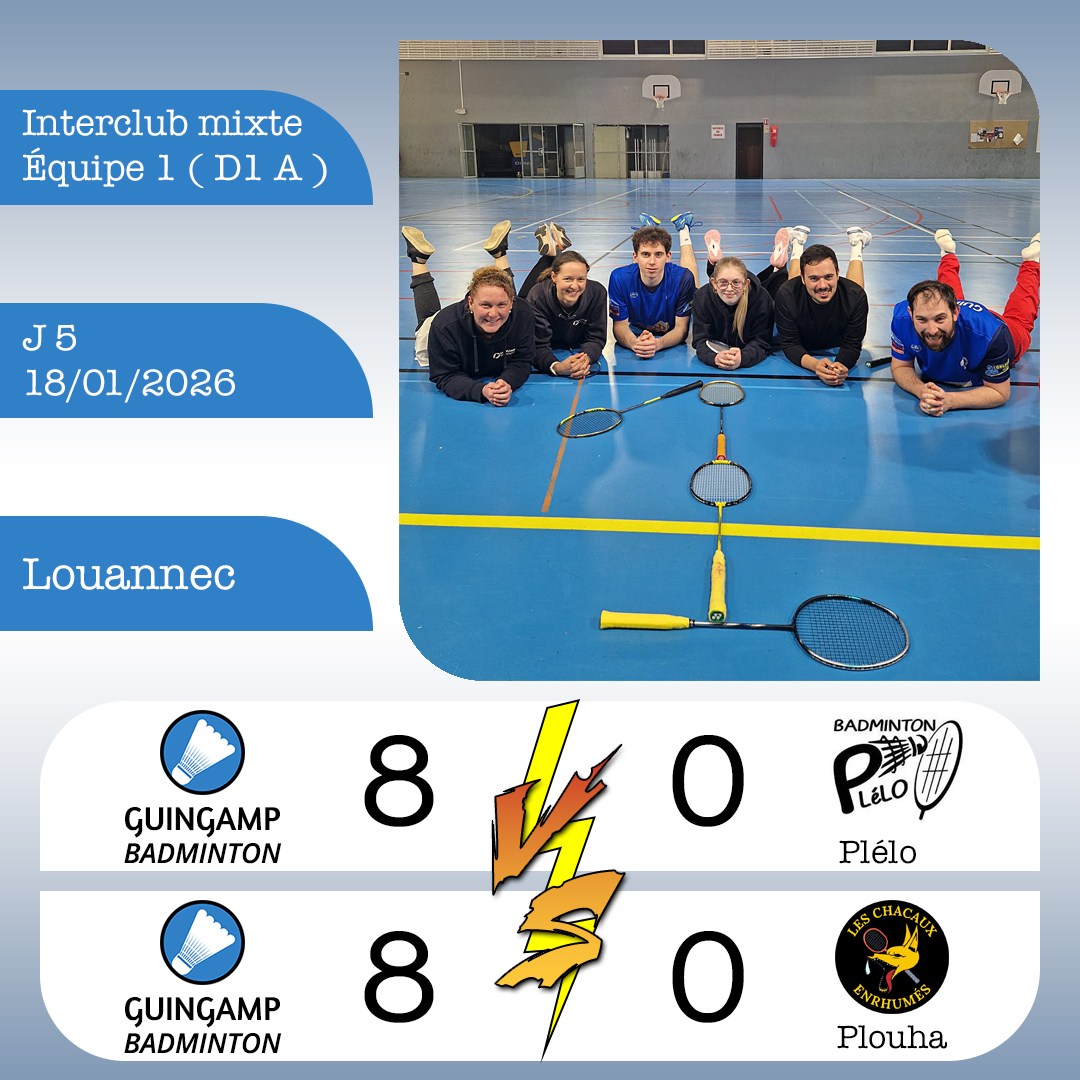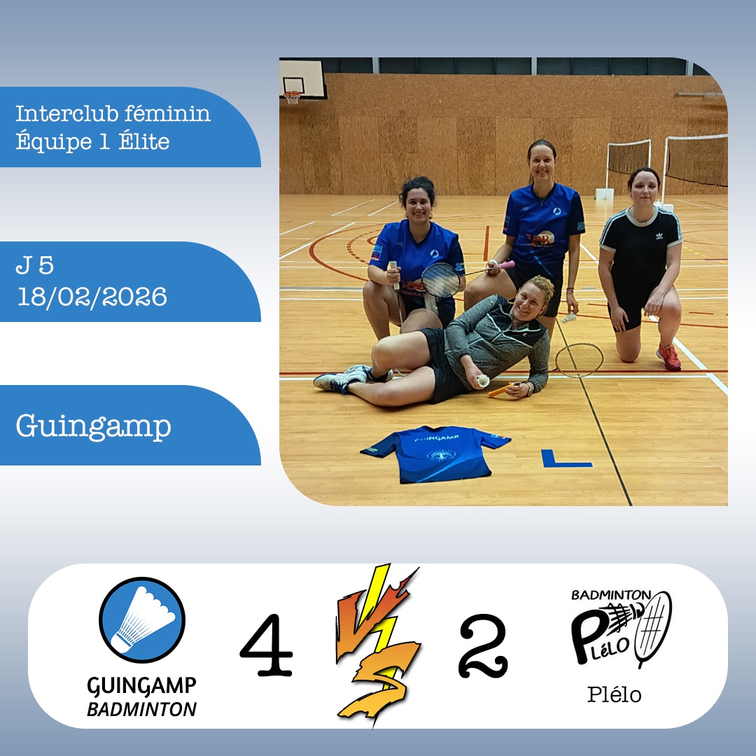 Cette semaine avait lieu les 1ères rencontres unisexes pour le Guingamp Badminton. Lundi soir, nous recevions à domicile Ploubazlanec pour l’équipe masculine « élite 1 » et Lamballe pour l’équipe féminine « élite 2 ». Voici leurs résultats :
