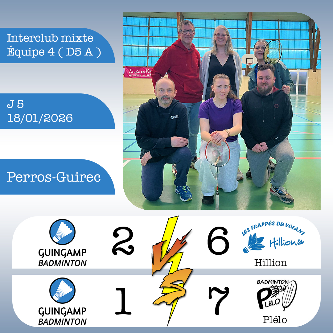 L’équipe 4 termine en 4ème position de D5B. L’équipe jouera contre Lamballe pour la journée de classement 👀.